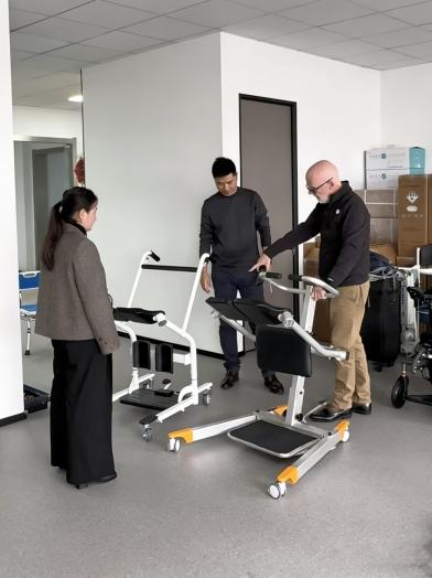 In éineacht lenár bpríomhoidí ábhartha, phléigh an tUasal James dhá mhúnla d’ardaitheoirí aistrithe othar ilfheidhmeacha, rinne sé iniúchadh cúramach ar struchtúir shamplacha agus rinne trialacha ar an láthair.