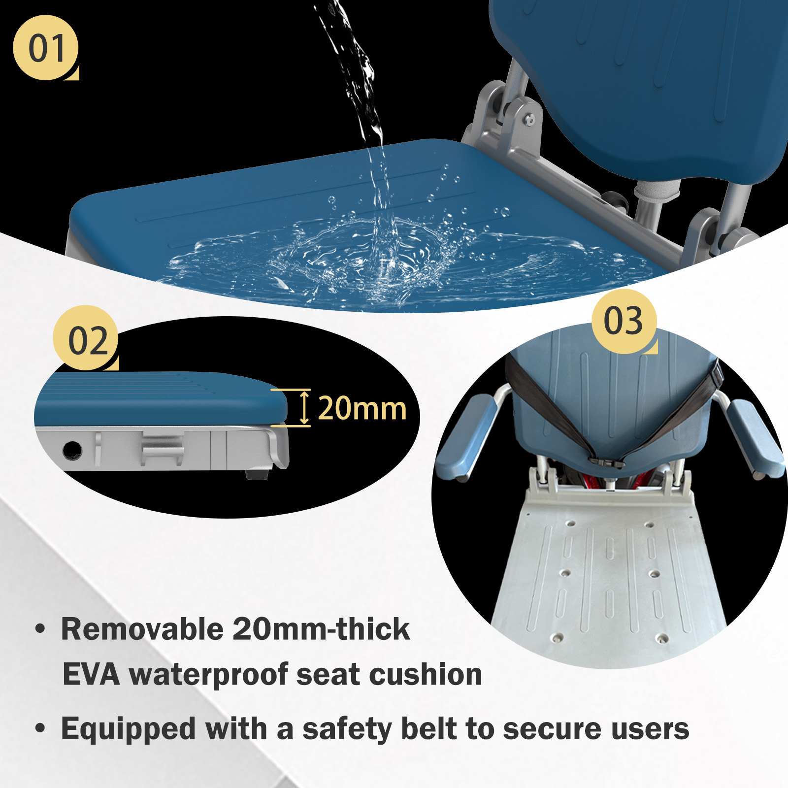 Glacann príomhchodanna córas tarchurtha séalaithe chun cur isteach deannaigh a laghdú, rud a éilíonn ach lubrication éadrom bunaithe ar litiam gach sé mhí. Tá an chathaoir faoi thiomáint ag a Ceallraí litiam 24V / 2600mAh le dearadh plug-and-play le haghaidh athsholáthar éasca, le tacaíocht ó raon leathan 100-240VAC charger . Tá stádas muirir léirithe go soiléir ag soilse dearga agus glasa, ag cinntiú oibriú sábháilte agus iomasach ar fud an domhain.